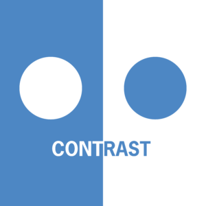 Contrast in design happens when two elements are in opposition to each other. This could be with colors, weights of fonts, and the sizing of elements. Contrast should be used to help direct your viewer’s eye to the most important information in a design.