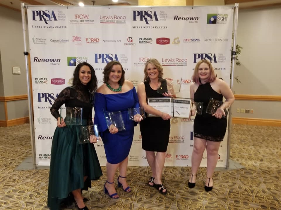 “Never did I ever imagine to be so honored among people we consider amazing industry champions and leaders when I started In Plain Sight Marketing eight years ago,” Plain said. “It was an amazing night, and a huge tribute to the quality of work our team puts out day after day after day. Our thanks to our clients who make it all possible, and to the Sierra Nevada chapter of PRSA, and to the amazing mentoring and training we have received through the organization.”